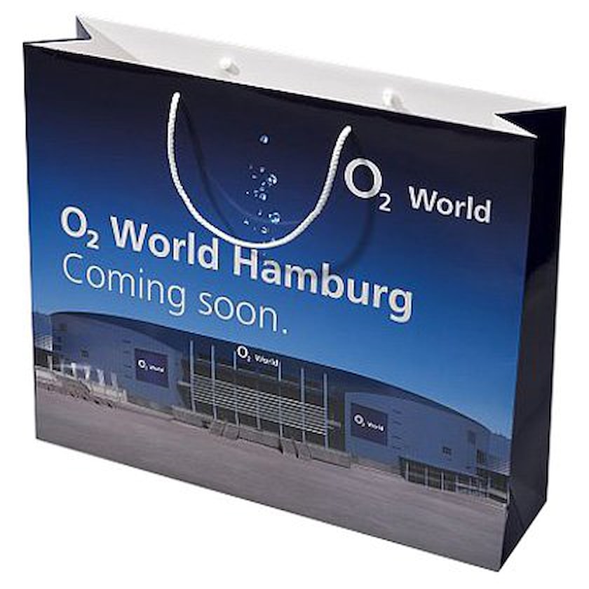 Handgefertigte, mittelgroße Papiertasche mit Trageschnur. Schnurgriff und Laminierung verleihen der Tasche ein luxuriöses Aussehen. Die Papiertasche ist im Boden kartonverstärkt für extra starken Halt. Sie bestimmen das Design aller Seiten der Tasche, es gibt auch viele Schnurfarben zur Auswahl. Druck in max. 4 Farben nach Pantone-Skala, darüber hinaus in CMYK. Die Tasche ist innerhalb der EU gefertigt.