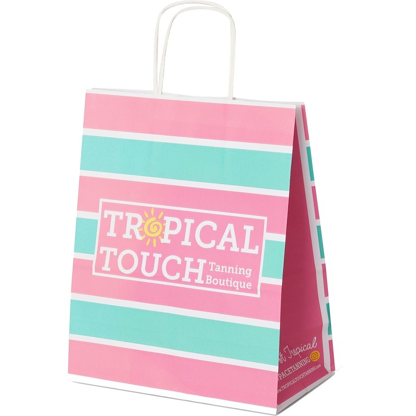Kleine Papiertüte mit Druck über die gesamte Oberfläche. Die Papiertüte besteht aus 100 Gramm schwerem Papier und hat gedrehte Griffe. Der Druck erfolgt über alle Seiten der Tüte. Laden Sie die Druckvorlage herunter und gestalten Sie Ihre eigene Papiertüte! Die Mindestmenge beträgt 3000 Stück. Es kann zu einer Über- oder Unterproduktion von bis zu 15 % kommen. Die gelieferte Menge wird in Rechnung gestellt.