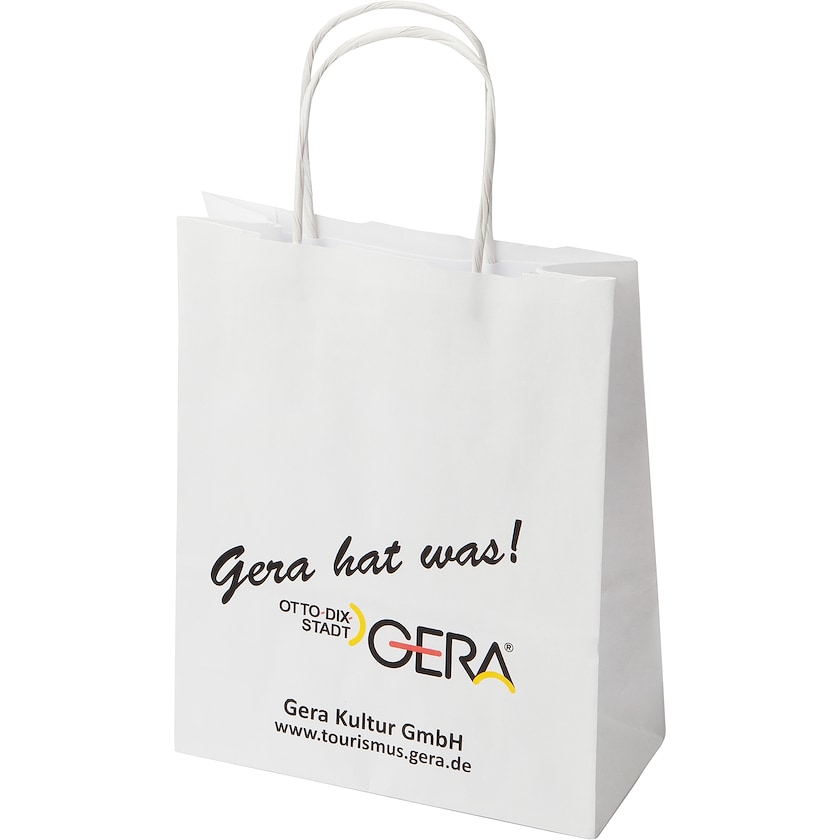 Kleine Papiertüte mit Kordelgriff. Der Druckpreis gilt für eine Seite. Bis zu 15 kg Tragfestigkeit. Eine schöne Tüte zu einem guten Preis!