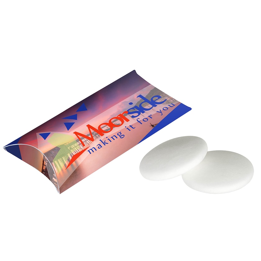 Kleine Papierschachtel mit 2 Mintpastillen. Sie gestalten die Schachtel!