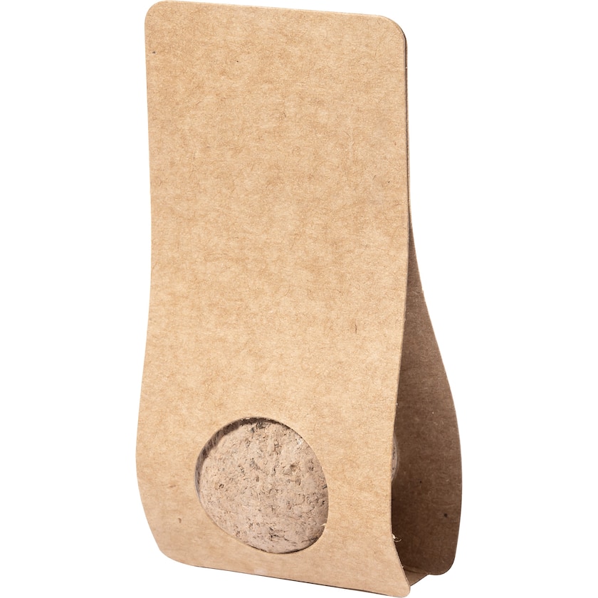 Kugel mit Blumensamen, die an einem naturfarbenen Papierhalter befestigt ist. Die Blumensamen sind von gemischten Blumensorten. Auf der Rückseite des Papierhalters befindet sich ein vorgedruckter Erklärungstext. Der Druck kann maximal zweifarbig erfolgen.