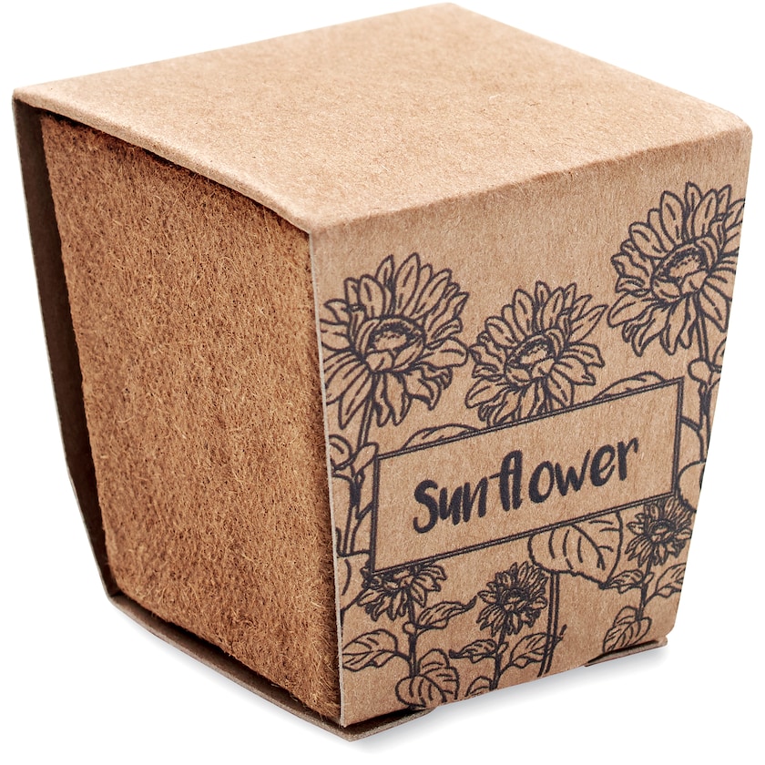 Biologisch abbaubarer Topf mit Sonnenblumenkernen. Ein Samen ist im Lieferumfang enthalten. Das Anzuchtset wird in der EU hergestellt.