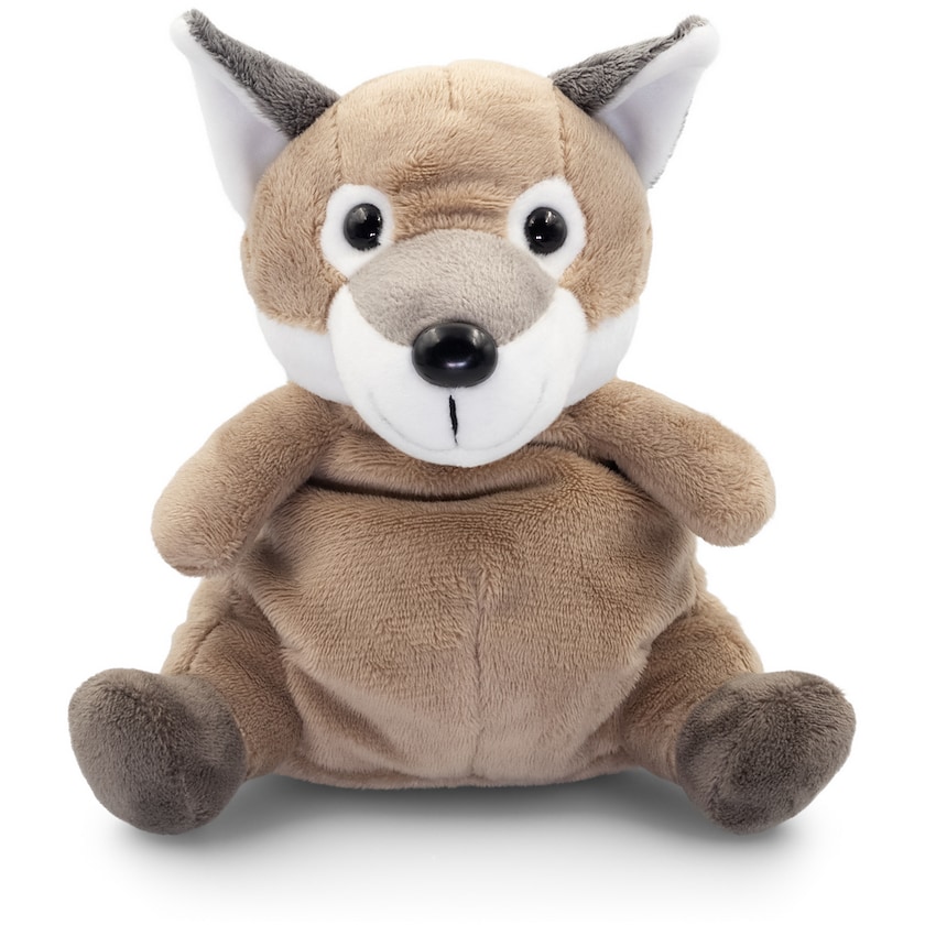 Plüschtier in Form eines niedlichen Wolfes. Hergestellt aus weichem, kuscheligem Plüsch. Im Inneren befinden sich kleine Kügelchen, die es dem Wolf erleichtern, aufrecht zu sitzen.