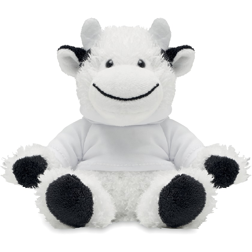 Süße Kuh mit weißem Hoodie. Gedruckt wird auf den Hoodie. Perfekt für Kinder, die Kühe mögen.
