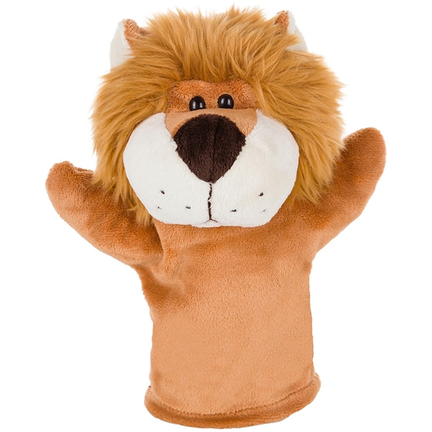 Handpuppe in Form eines Löwen. Gedruckt wird auf die Brust des Löwen. Ein witziges und kreatives Geschenk für Kinder.