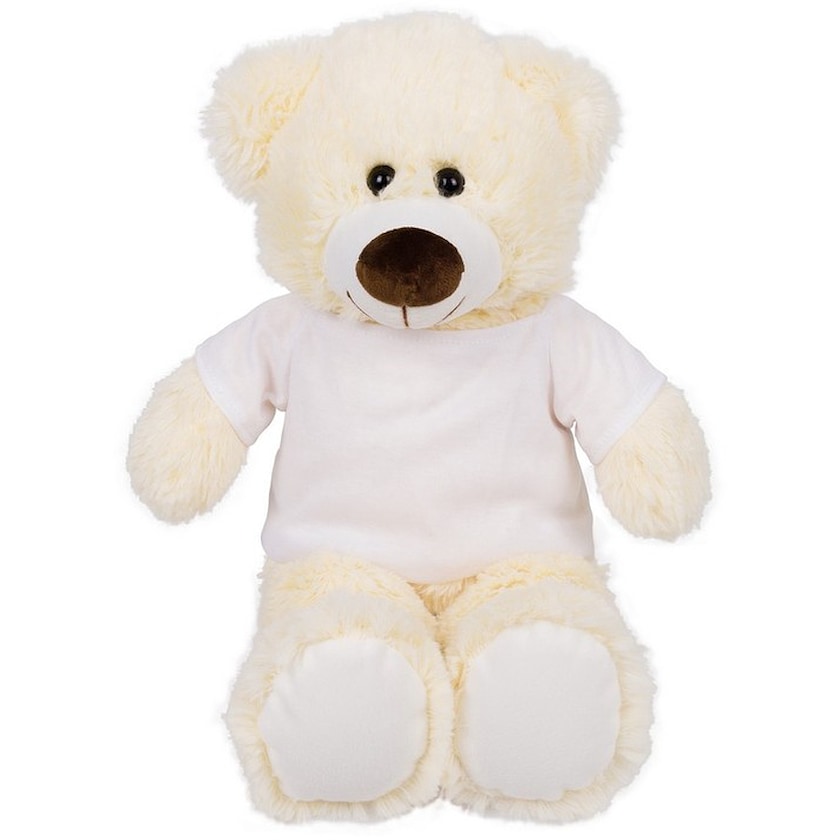 Hellen Teddybären mit weißem T-Shirt bedrucken. Das T-Shirt wird separat verpackt geliefert. Ein kuscheliger Teddybär in der richtigen Größe.