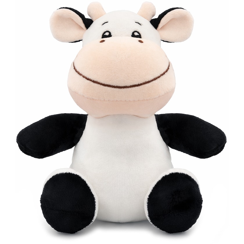 Eine niedliche kleine Kuh namens Rosie. Weich, flauschig und absolut kuschelig. Ihre Werbebotschaft wird prominent auf dem Bauch platziert.