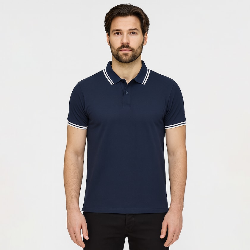 Polo-Shirt für Herren mit Ärmelbündchen und Kragen mit Kontraststreifen. Das Poloshirt besteht aus 100% Baumwolle. Die Knöpfe passen gut zur Hemdfarbe. Die Mindestbestellmenge beträgt nur 5 Stück.