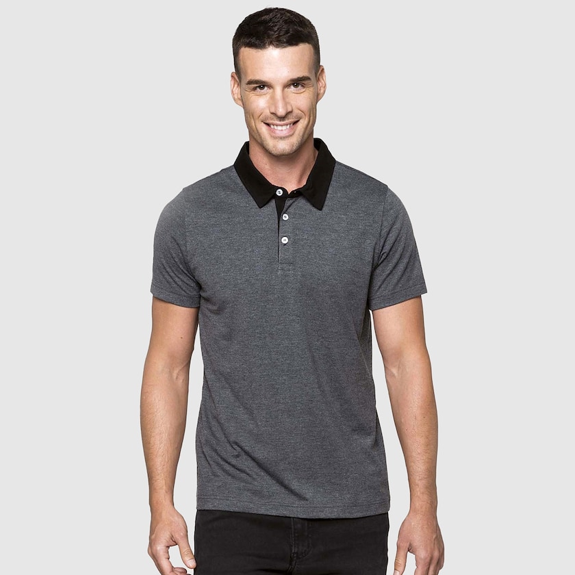 Polo-Shirt mit eleganten Details an Hals und Kragen in Kontrastfarbe. Das Shirt ist aus 100 % Baumwolle, außer die Farbe dark Grey Heather, die aus 65 % Polyester und 35 % Baumwolle ist. Einzelverpackt in Plastiktüten. Gibt es auch als Damenmodell.