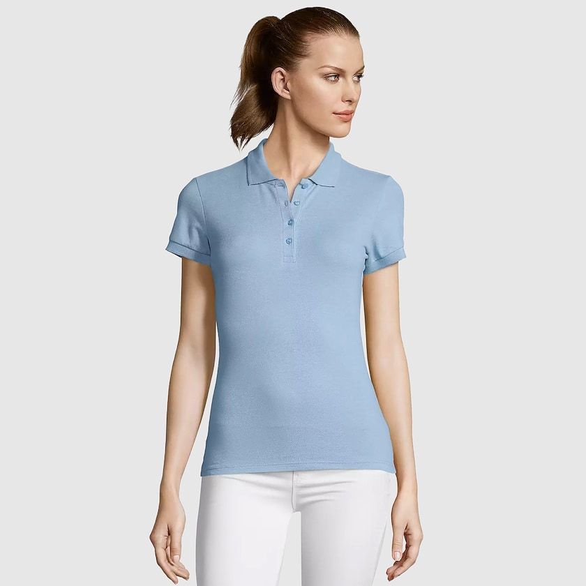 Damenpolo zum günstigen Preis, erhältlich in einer Vielzahl ansprechender Farben. Der Stoff besteht aus 100% Baumwolle und wiegt 170g/m². Der Stoff ist ECO-TEX zertifiziert. Am Ausschnitt befinden sich 4 Knöpfe, die farblich abgestimmt zum Stoff passen. Gibt es auch als Herrenmodell.