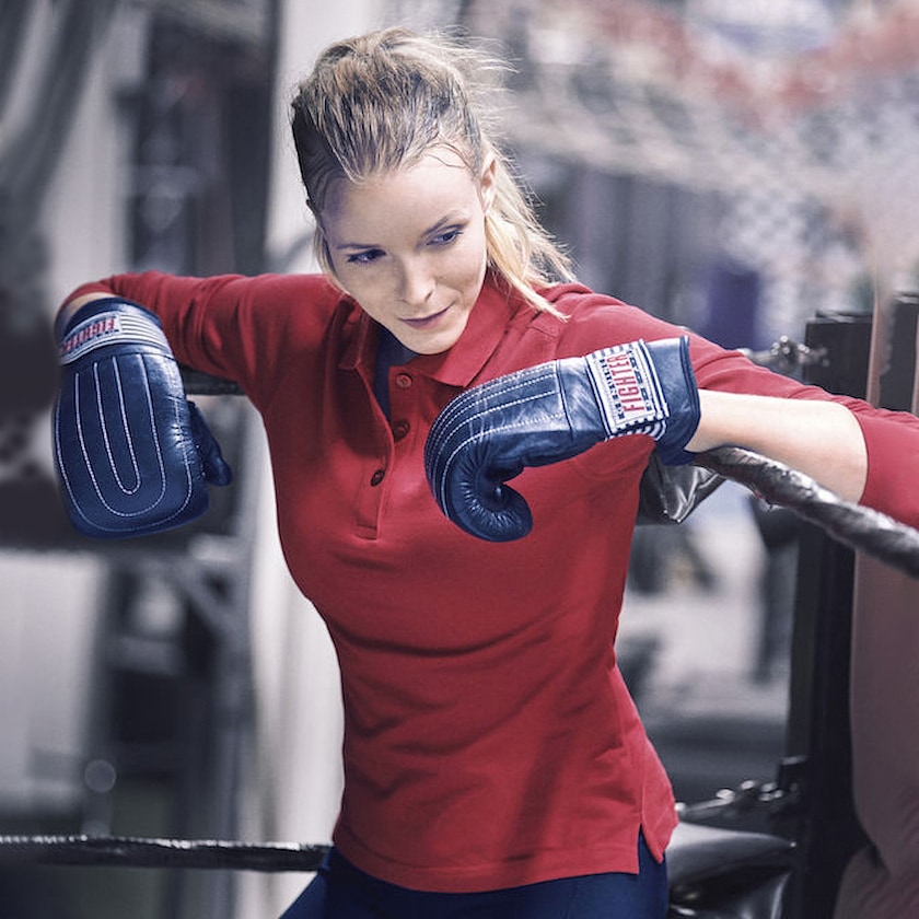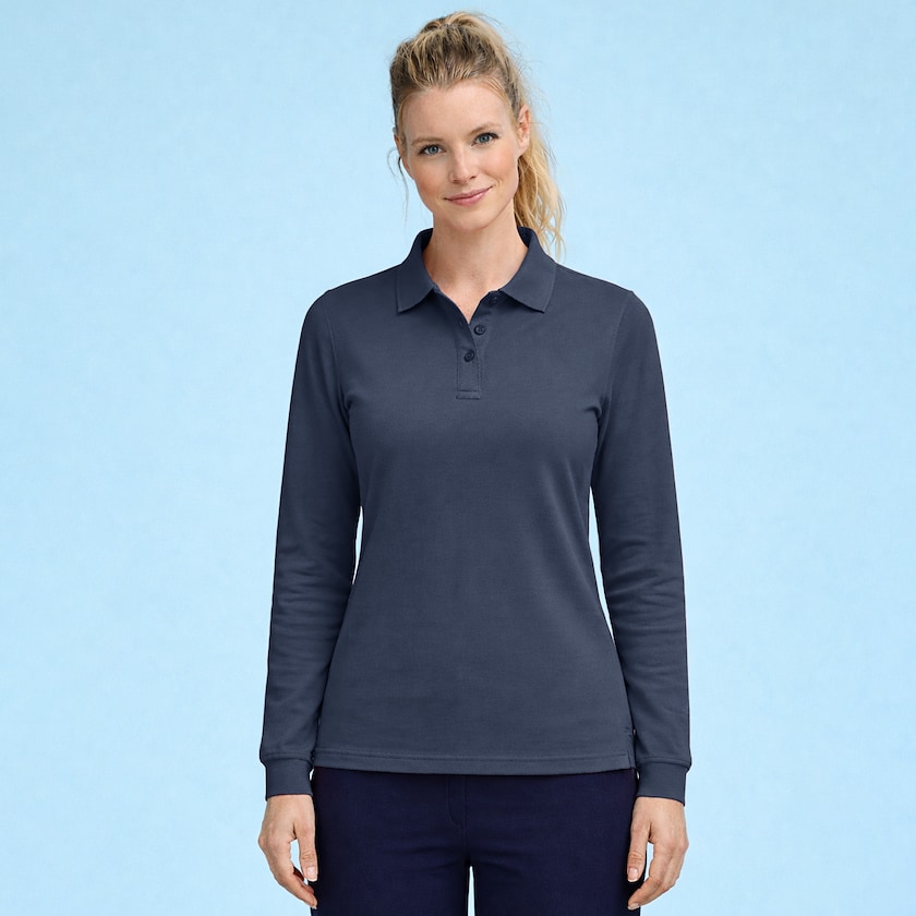Langarm Polo-Shirt aus 100% Baumwolle. Das Polo-Shirt hat Schlitze an den Seiten und drei Knöpfe am Halsauschnitt.