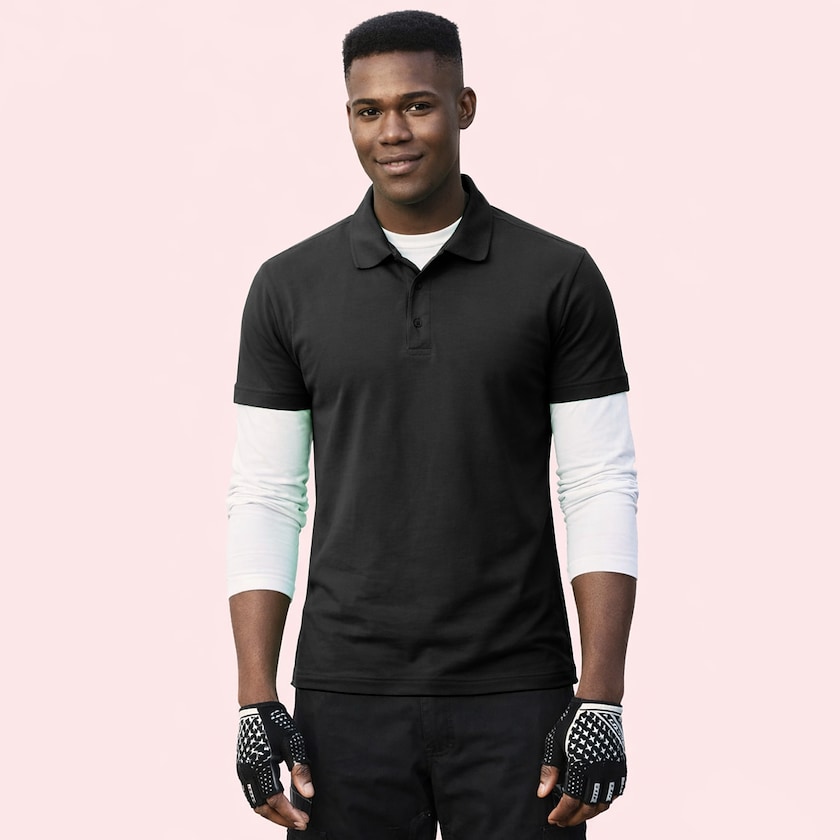 Polo-Shirt aus Baumwolle, mit einer etwas schmaleren Form als üblich. Das Polo-Shirt hat Schlitze an den Seiten und drei Knöpfe am Halsausschnitt.
