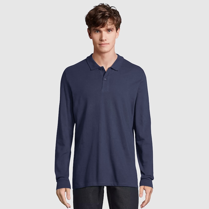 Langärmeliges Poloshirt für Männer bedrucken. Das Poloshirt ist aus 180 Gramm ÖKO-TEX-zertifizierter Baumwolle gefertigt. Im Nacken befinden sich zwei Knöpfe, die farblich auf den Stoff abgestimmt sind. Das Poloshirt kann entweder bedruckt oder bestrickt werden. Gibt es auch als Damenmodell.