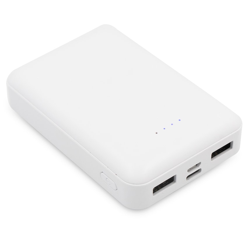 Leistungsstarke Powerbank in kompakter Größe. 4 Leuchtdioden zeigen den verbleibenden Energiestand an. Kann zwei Geräte gleichzeitig aufladen. Kabel nicht enthalten.