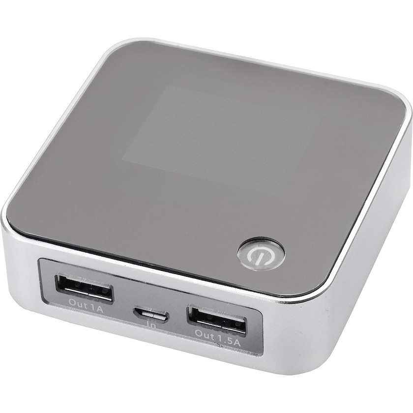 Das Logo auf der Powerbank leuchtet auf, wenn sie eingeschaltet wird. Concord ist eine leistungsstarke Powerbank mit Metall- und Kunststoffrahmen. Das Motiv wird auf der Vorderseite eingraviert und leuchtet, wenn eine Taste gedrückt wird. Die Powerbank verfügt über 2 USB-Ports, mit denen zwei Geräte gleichzeitig geladen werden können. Ein Display zeigt das Energieniveau an. Input 5V/1A, Output 5V/1A & 2A. Lieferung mit Micro-USB-Kabel.