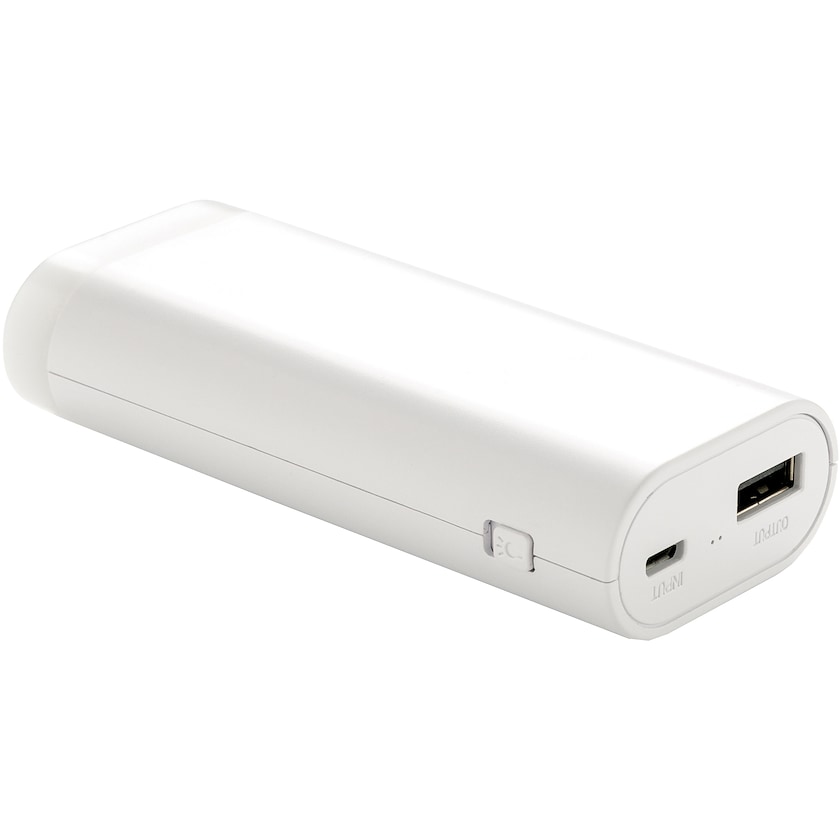 Leistungsstarke Powerbank für 5.000 mAh mit integrierter LED-Lampe. Lewis hat einen Output 5V/1A und Input 5V/1A. Mikro-USB-Kabel inkludiert. Eine Powderbank, die jederzeit als Notbeleuchtung funktioniert.
