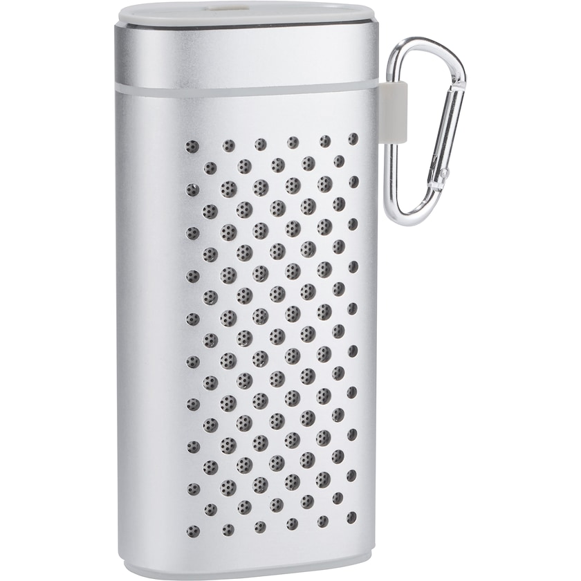 Powerbank mit Funklautsprecher. Musik kann via Bluetooth (Verison4.2), einem 3,5 mm-Kabel (nicht im Lieferumfang) oder Micro-SD-Karte kommen. Middleton ist IPX4-wasserdicht, d. h. er kann Wasserspritzern von bis zu 10 Litern pro Minute standhalten. So ist ein leichter Regen kein Problem! Die Powerbank erfüllt alle relevanten EU-Richtlinien, ist CE-zertifiziert und hat eine einjährige Garantie. Micro-USB-Kabel ist im Lieferumfang enthalten. Input: 5V/1A, Output: 5V/2A. Der Lautsprecher hat eine Kapazität von 5 W und hat eine Spielzeit von bis zu 15 Stunden.