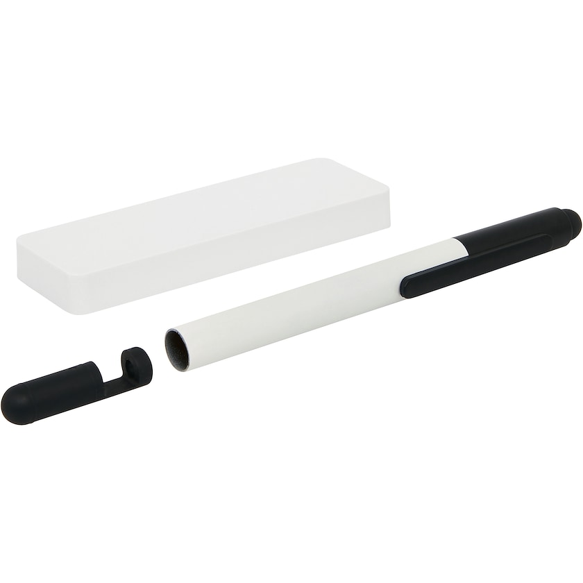 Set aus Powerbank und Touchpen. Der Stift kann auch als Handyhalter genutzt werden. Output 5V/1A und Input 5V/1A. Mikro-USB-Kabel im Lieferumfang enthalten. Der Druck erfolgt entweder auf der Powerbank oder dem Stift. Wird in einer elegante Geschenkverpackung geliefert.