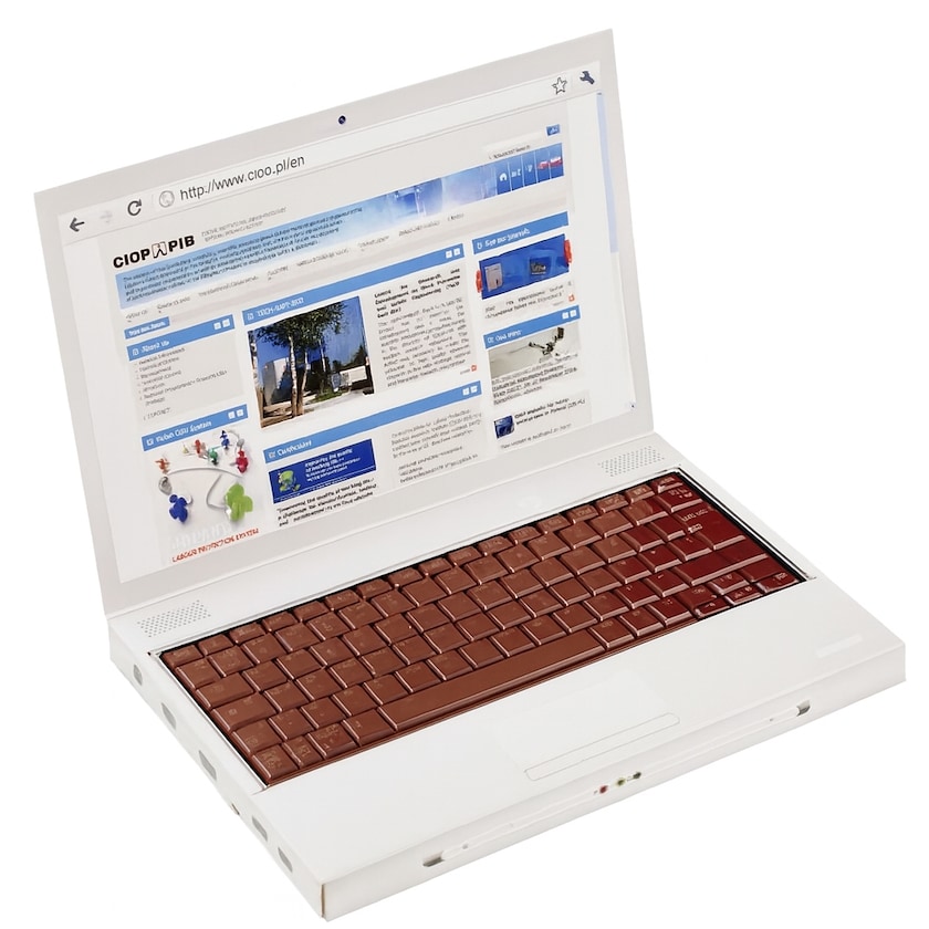Schokoladenschachtel in Form eines Laptops. Sogar die Schokolade sieht aus wie eine Tastatur. Die ganze Schachtel wird nach Ihren Wünschen designt und bedruckt. Eine coole Schokoladenschachtel für IT-Unternehmen.