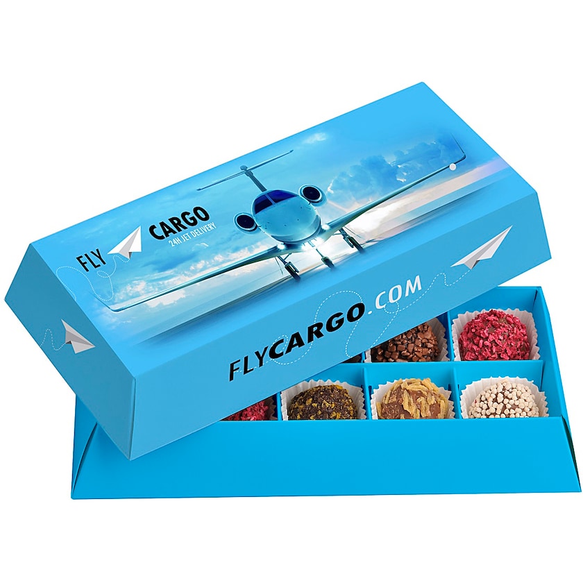 Schokoladenschachtel mit 10 hochwertigen Schokoladenpralinen. Jede Schokoladenpraline wiegt ca 8,5 g. Die Geschmacksrichtungen sind gemischt. Die ganze Verpackung wird nach Ihren Wünschen mit 4-Farb-Fotodruck bedruckt. Eine luxoriöse Schokoladenschachtel mit Pralinen höchster Qualität!