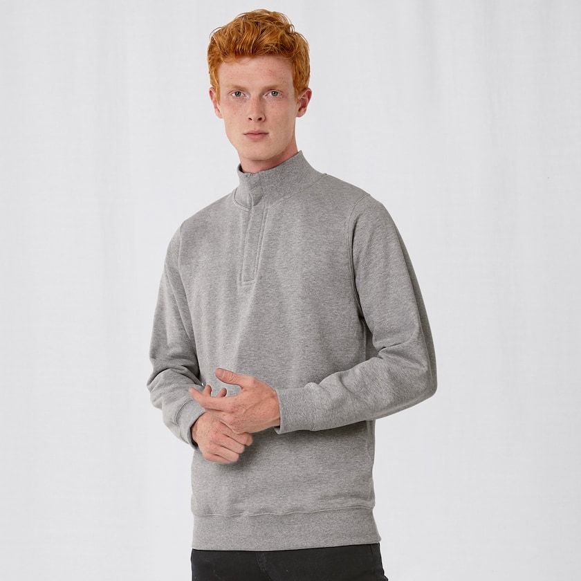 Modernes Sweatshirt von B&C mit kurzer Reißverschluss. Aus Baumwollmischung gefertigt, die Innenseite ist aus Fleece. Das Sweatshirt wird in Plastikhülle verpackt geliefert.