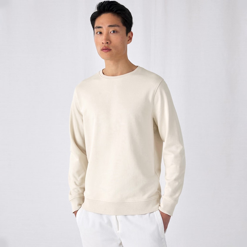 Umweltfreundlicher Pullover von B&C. Der Pullover ist aus 80 % Bio-Baumwolle und 20 % recyceltem Polyester. Die Farbe heather grey ist aus 71 % Bio-Baumwolle, 25 % recyceltem Polyester und 4 % Viskose. Der Pullover hat modische Details, so dass er trotz seiner klassischen Form modern aussieht. Gibt es auch als Damenmodell.