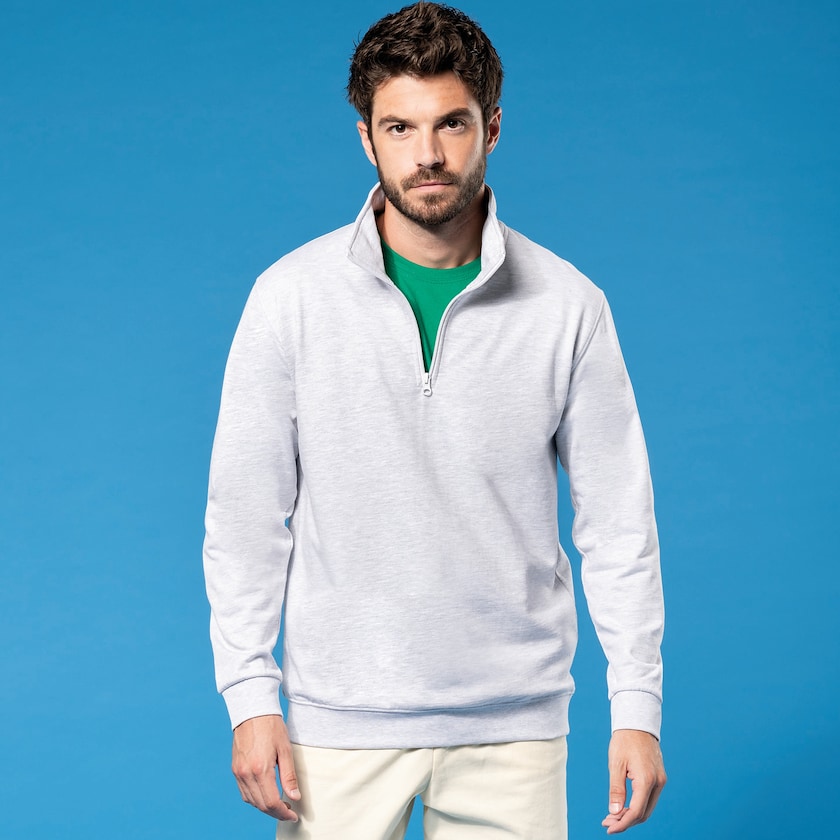 Trendiges Sweatshirt mit kurzem Reißverschluss am Hals. In vielen schönen Farben erhältlich. Einzelverpackt in Plastiktüten.