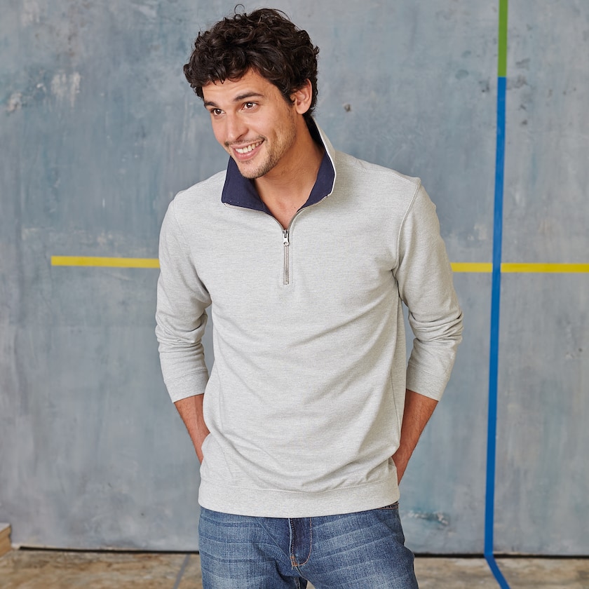 Pullover mit kurzem Reißverschluss und Kragen mit Kontrastfarben. Kariban Trucker ist ein lässiger Pullover der sich für eine Markierung mit Stickerei eignet. Der Pullover wird in Plastikhülle verpackt geliefert.