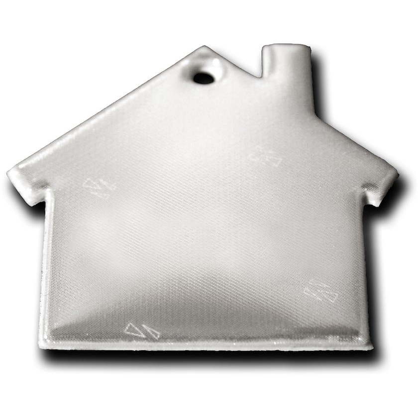 Weichreflektor in Hausform. Perfekt für neue Hausbesitzer oder Makler! Der Reflektor wird mit Schnur und Sicherheitsnadel oder mit Metallkette geliefert. Das Reflektormaterial ist von 3M Scotchlite und entspricht EN13356:2001. Um den Reflektor in seinem Reflektiervermögen nicht zu beeinträchtigen, erfolgt der Druck unter der Oberfläche.