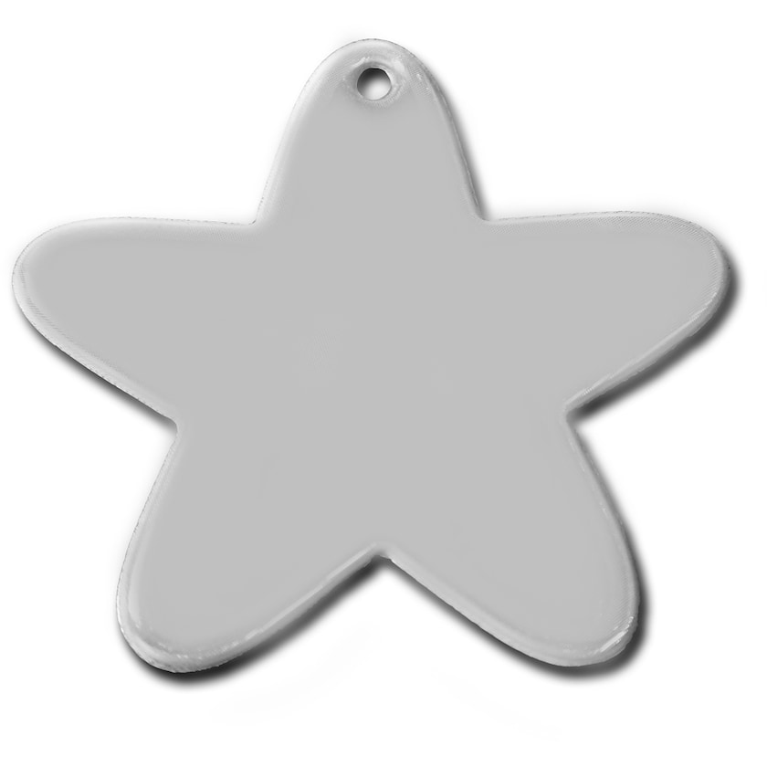 Sternförmiger Weich-Reflektor aus hochwertigem Material. Wird mit Schnur und Sicherheitsnadel oder mit Metallkette geliefert. Genehmigtes Reflektormaterial gemäß EN13356:2001. Um den Reflektor nicht zu beschädigen, erfolgt der Druck unter der Oberfläche.