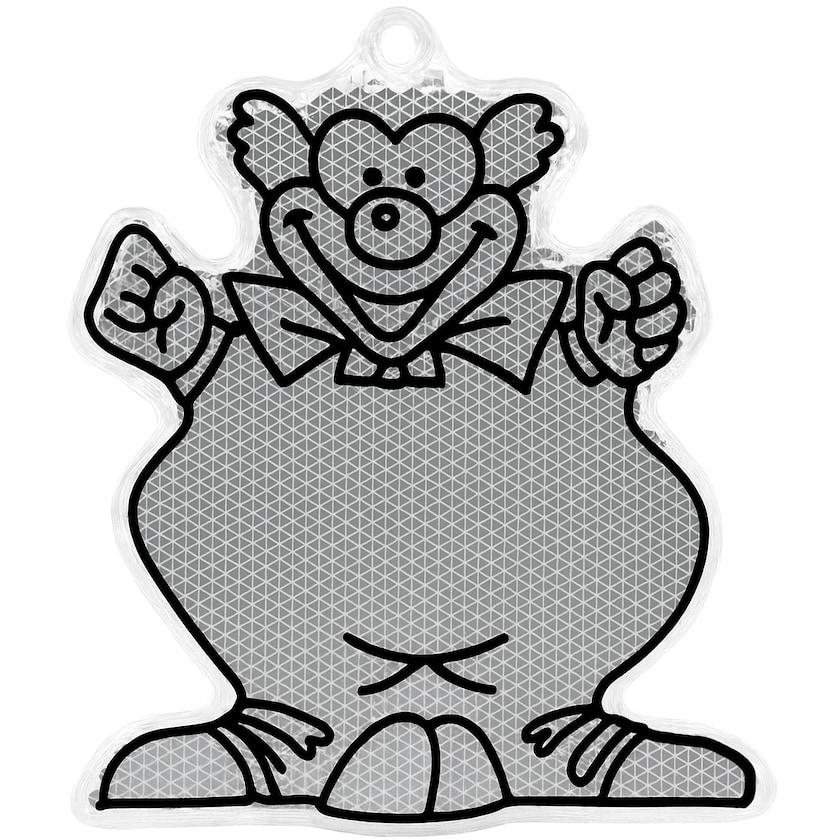 Cooler Reflektor in Form eines Clowns. Der Reflektor ist ursprünglich unbedruckt. Die Konturen des Clowns etc. werden mit der gleichen Farbe wir Ihr Druck versehen.