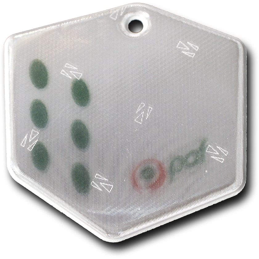 Welches ist Ihre Lieblingszahl? Reflektor in Form eines Würfels. Der Reflektor wird mit Schnur und Sicherheitsnadel oder mit Metallkette geliefert. Genehmigtes Reflektormaterial gemäß EN13356:2001. Um den Reflektor in seinem Reflektiervermögen nicht zu beschädigen, erfolgt der Druck unter der Oberfläche.