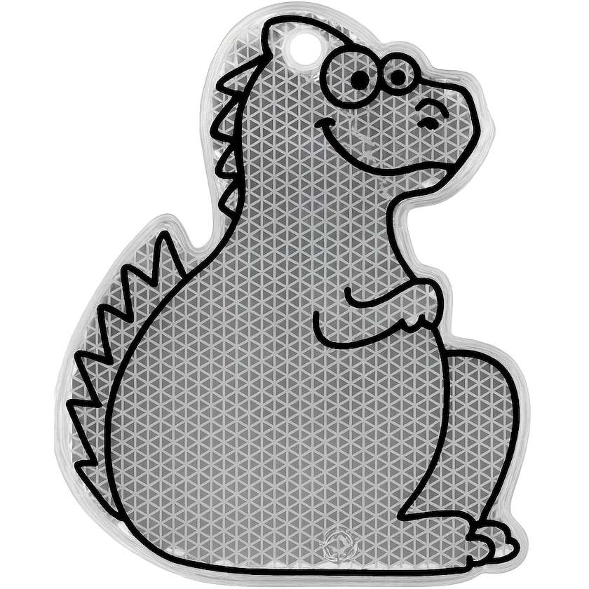 Ein freundlicher Dinosaurier der Leben retten kann. Der Reflektor ist unbedruckt. Die Konturen des Dinosauriers etc. werden mit der gleichen Farbe wie Ihr Druck versehen.