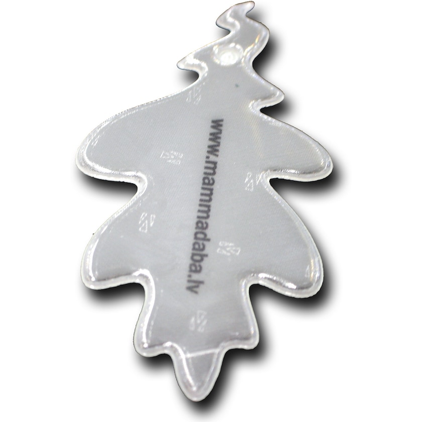 Weich-Reflektor in Form eines Herbstblattes. Der Reflektor wird mit Schnur und Sicherheitsnadel oder mit Metallkette geliefert. Das Reflektormaterial ist von 3M Scotchlite und entspricht EN13356:2001. Um den Reflektor in seinem Reflektiervermögen nicht zu beeinträchtigen, erfolgt der Druck unter der Oberfläche.