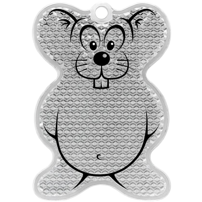 Eine glückliche kleine Maus. Der Reflektor ist unbedruckt. Die Konturen der Maus etc. werden mit der gleichen Farbe wie Ihr Druck versehen.