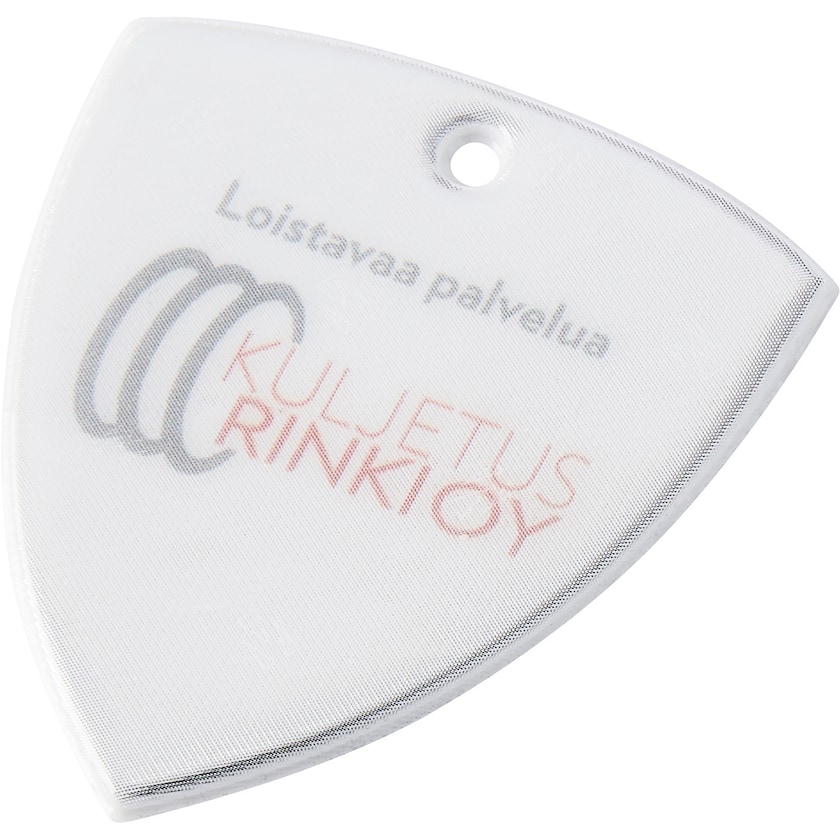 Weich-Reflektor in Form eines Wappenschildes. Der Reflektor wird mit Schnur und Sicherheitsnadel oder mit Metallkette geliefert. Das Reflektormaterial ist von 3M Scotchlite und entspricht EN13356:2001. Um den Reflektor in seinem Reflektiervermögen nicht zu beeinträchtigen, erfolgt der Druck unter der Oberfläche.