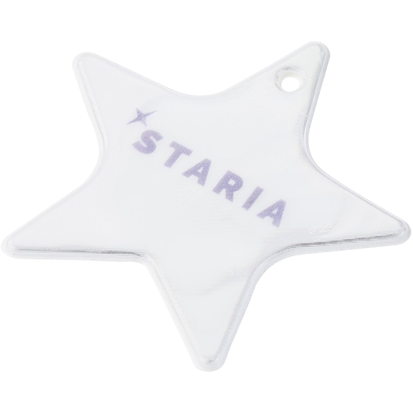 Weich-Reflektor in Form eines Sterns. Der Reflektor wird mit Schnur und Sicherheitsnadel oder mit Metallkette geliefert. Das Reflektormaterial ist geprüft und entspricht EN13356:2001. Um den Reflektor nicht zu beschädigen, erfolgt der Druck unter der Oberfläche.