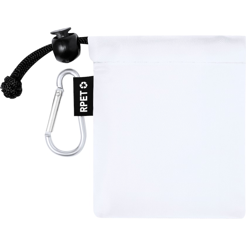 Regenponcho in umweltfreundlicher Aufbewahrungstasche. Der Druck erfolgt auf der Aufbewahrungstasche.