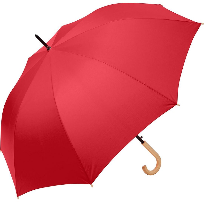 Umweltfreundlicher Golfschirm mit recyceltem Polyestergewebe. Der Regenschirm verfügt über Details aus echtem Holz und recyceltem Kunststoff. Der Griff ist aus Holz. Der Stoff wird mit einer umweltfreundlichen Methode gefärbt, die nicht so viel Wasser wie üblich benötigt.