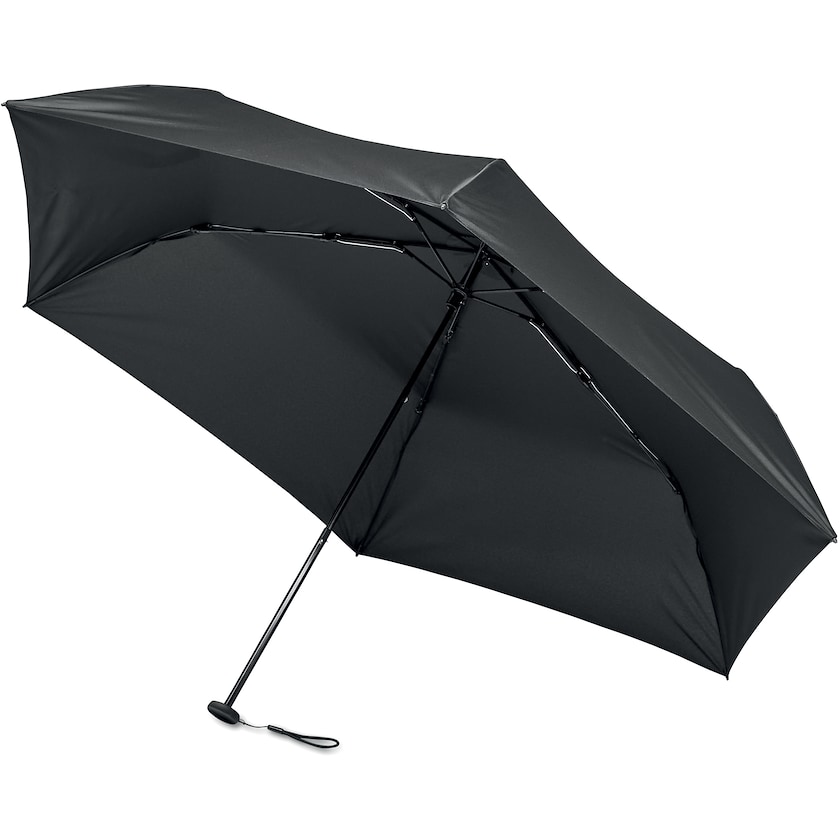 Ultraleichten, kompakten und sturmfesten Regenschirm bedrucken. Der Regenschirm hat drei Abschnitte und kann manuell geöffnet und geschlossen werden. Der Schirmstock und die Schirmrippen bestehen aus Kohlefaser.