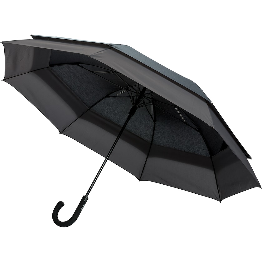 Hochwertiger sturmsicherer Regenschirm. Die Rippen bestehen aus Fiberglas und die Schirmstange besteht aus Metall. Der Stoff besteht aus recyceltem Polyester. Zusammengeklappt ist der Schirm sehr kompakt. Das Öffnen erfolgt automatisch und das Schließen manuell.