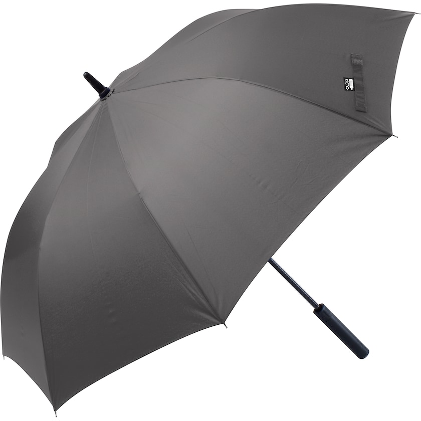 Umweltfreundlicher, sturmsicherer Regenschirm mit Ihrem eigenen Design bedrucken lassen. Der Schirm verfügt über einen Stoff aus umweltfreundlichem rPET und einen Schirmstock sowie Speichen aus Fiberglas.