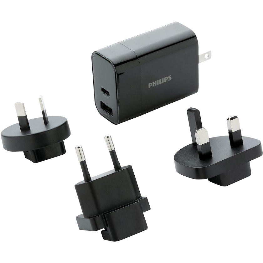 Ultraschneller Reiseadapter von Philips. Lieferung in praktischer Aufbewahrungstasche. Der Reiseadapter besitzt vier Module: integrierte Steckdose für die USA und Wechselsteckdosen für Australien, Großbritannien und die EU. Geliefert in einer Geschenkbox von Philips. Der Druck kann auch auf der Aufbewahrungstasche platziert werden, dann beträgt die Druckgröße 90 x 40 mm.