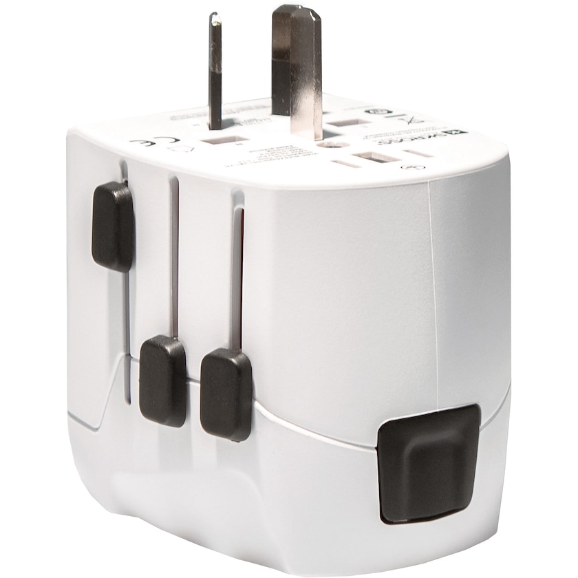 Hochwertiger Reiseadapter von Skoss mit zwei USB-Ausgängen. Sicheres Anschließen von 2- und 3- poligen Geräten aus Europa (Schuko und Euro) mit Steckkontakten für USA, UK, Australien und China. Mit den zwei USB-Ausgängen kann man gleichzeitig zwei moblie Geräte laden. Lieferung in einer eleganten Verpackung mit aufgedruckter Anleitung.