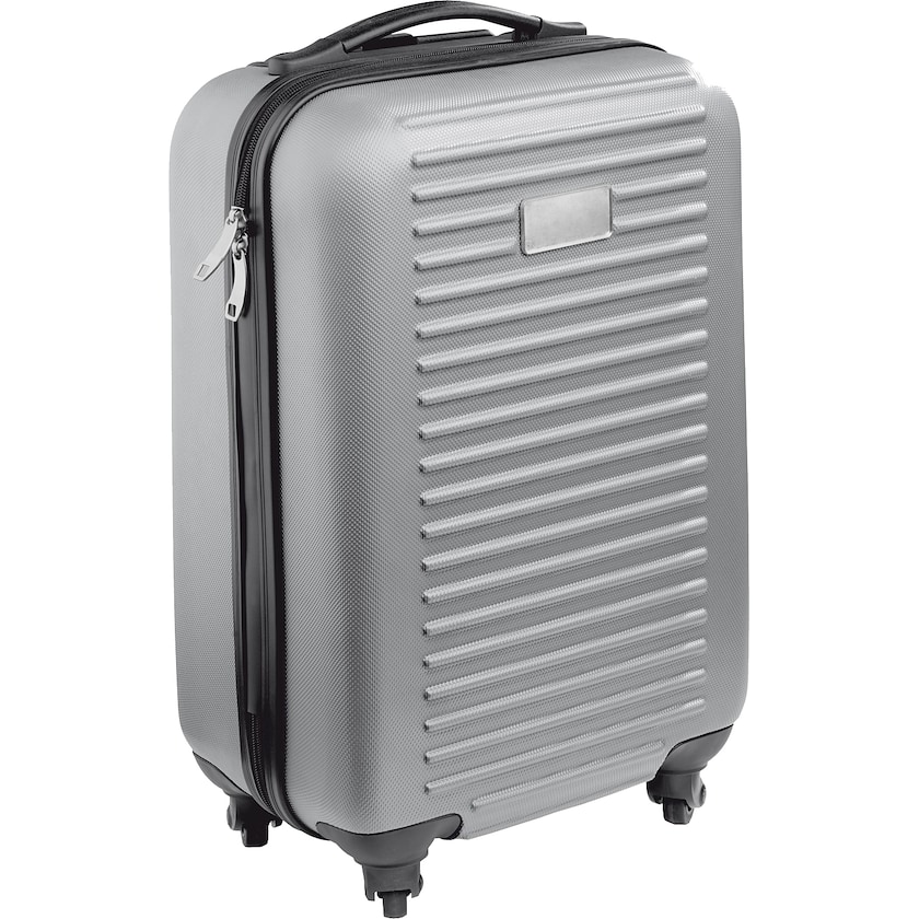 Trolley im kompakten Format, der in mehreren verschiedenen Farben erhältlich ist. Der Trolley hat vier Räder und doppelte Reißverschlüsse. Die Beschriftung erfolgt durch Druck auf die vordere Metallplatte. Der Druck ist mit einer Epoxid-Schutzschicht überzogen, die dem Druck eine luxuriöse Anmutung verleiht.