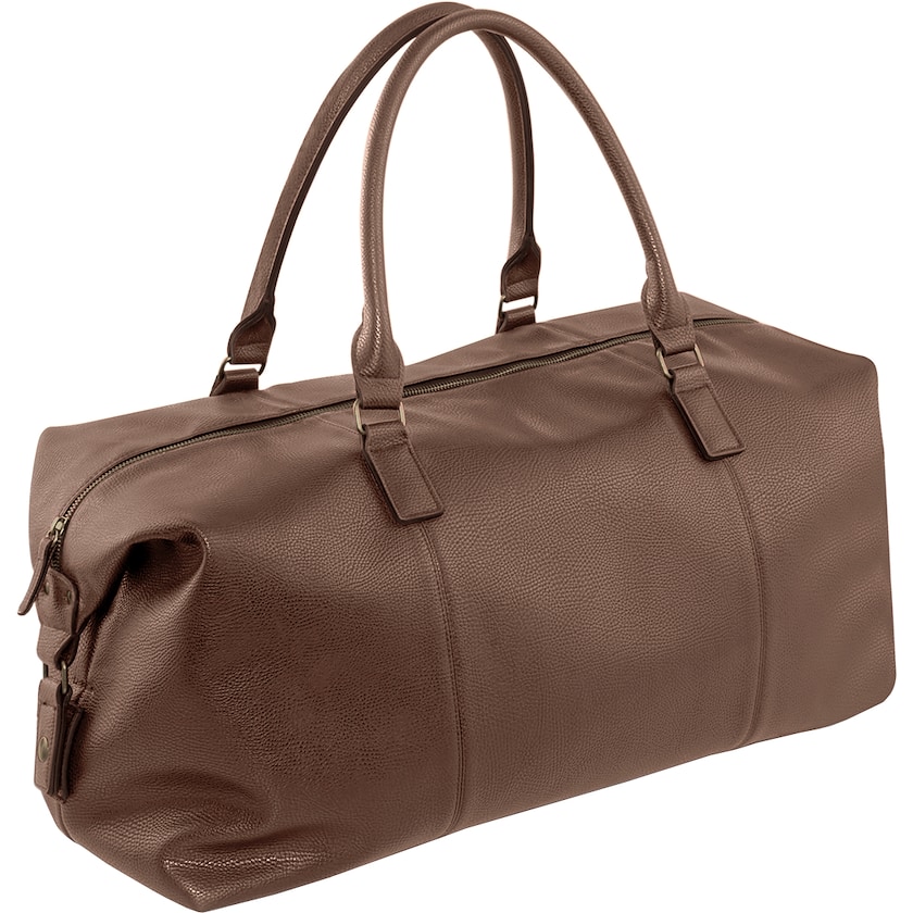 Hochwertige Wochenendtasche aus Kunstleder. Die Innenseite ist mit einem elegant gestreiften Stoff gefüttert. Im Inneren befindet sich eine Aufbewahrungstasche für Wertsachen. Die Tasche kann entweder in der Hand oder über der Schulter getragen werden.