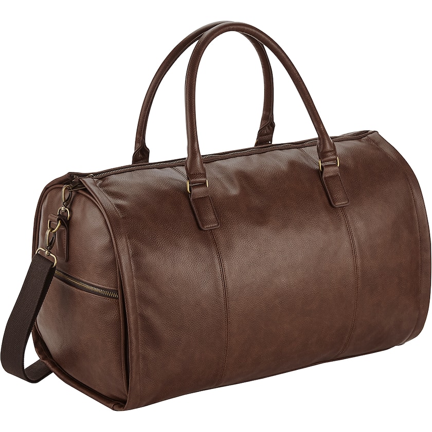 Luxuriöse Wochenendtasche aus Kunstleder. Die Tasche verfügt über ein intelligentes System, mit dem Sie Anzüge und andere empfindliche Kleidungsstücke problemlos transportieren können. Im Inneren befinden sich ein Schuhfach und weitere clevere Aufbewahrungstaschen.