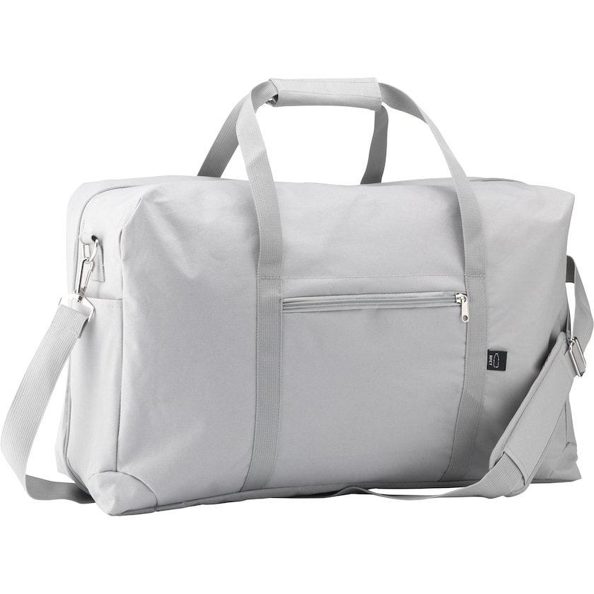 Hochwertige Weekendbag aus umweltfreundlichem Material. Draper wird aus recycelten PET-Flaschen hergestellt. Die Tasche lässt sich komplett öffnen, was das Packen erleichtert. Neben dem Hauptfach gibt es noch zwei separate Stauräume mit Reißverschluss. Im Inneren befindet sich ein separates Fach für den sicheren Transport eines 13 Zoll Laptops. Der Schultergurt ist abnehmbar. Es ist nur 1-farbiger Druck möglich.