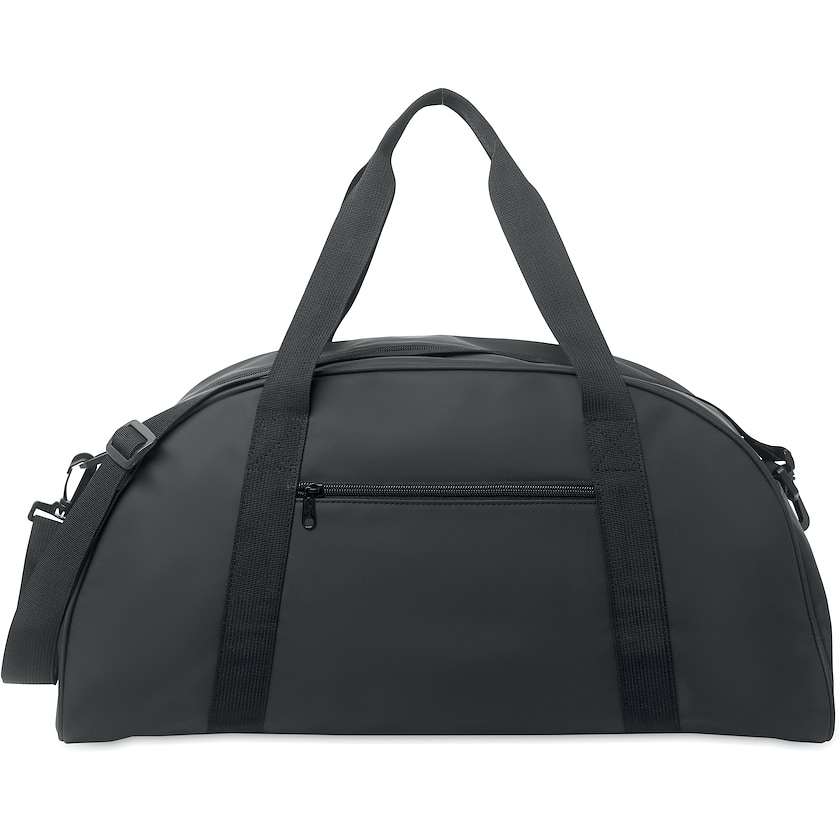 Hochwertige Wochenendtasche. Das Außenmaterial besteht aus weichem PU, während das Innenfutter aus nachhaltigem, umweltfreundlichem rPET gefertigt ist. Für zusätzliche Sicherheit und Ordnung sorgt eine praktische Innentasche mit Reißverschluss.