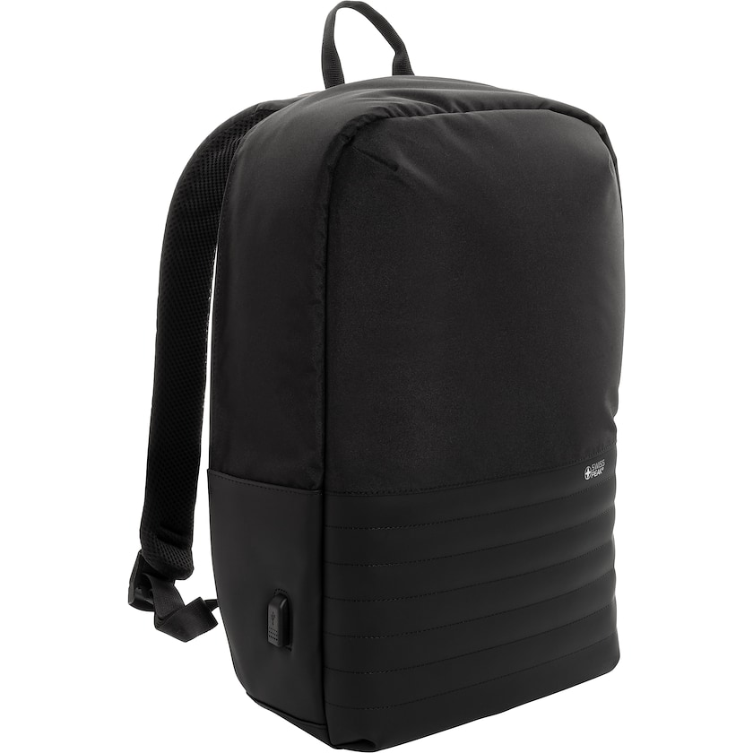 Anti-Diebstahl-Rucksack aus umweltfreundlichem Material. Im Inneren befindet sich ein gepolstertes Fach für einen 15,6 Zoll Laptop und ein Tablet. Der Rucksack bietet eine sichere Öffnung des Hauptfachs, RFID-geschützte Taschen und eine versteckte Tasche für Wertsachen.